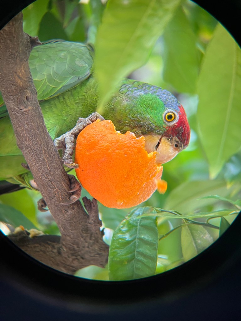 I don’t know how to deal with nonnative species. I don’t believe there is one solution. I want to preserve the uniqueness and diversity and histories built into every habitat on Earth, while also saving some consideration for the real individuals, full of their own feelings and intentions, who through no fault of their own find themselves in the wrong places. Perhaps in certain situations, such as isolated, vulnerable islands, it may be necessary to kill introduced species in order to save entire ecosystems of native ones. But I think in other places, they should be tolerated and respected. Humans are changing the way the world works in far more ways, and far more drastically, than we can comprehend. Not all those changes are inherently bad; cities like Los Angeles are already constructed ecosystems utterly unlike the habitats once found there. Maybe we can find a way to celebrate the fact that there’s room in this new ecosystem for birds – some of the smartest and loudest and strangest birds on the planet – to form their own, entirely new flocks, to fly together over desert hillsides on their jungle-green wings.